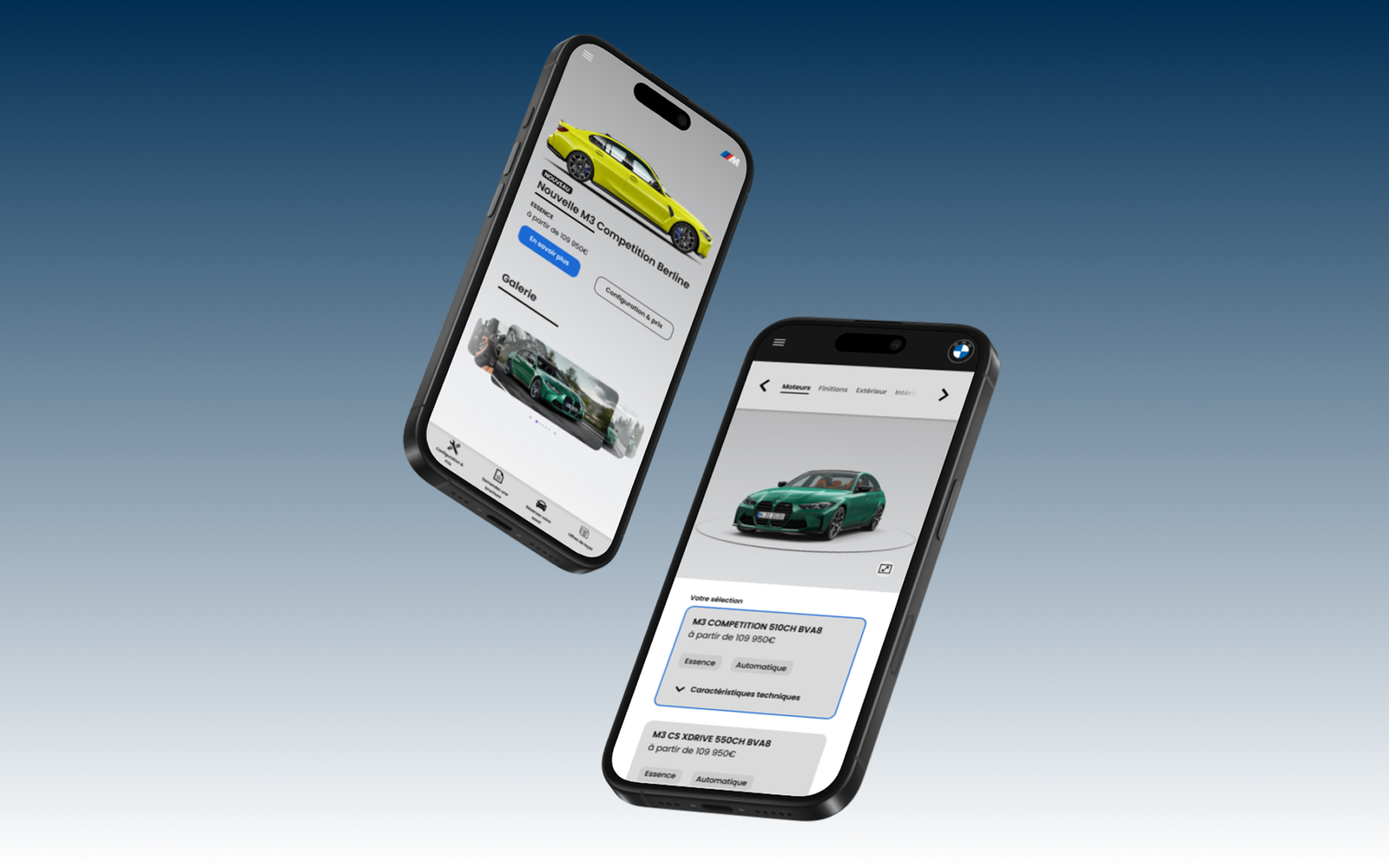 BMW nous a sollicités pour concevoir une maquette web mobile dédiée à la nouvelle M3 Competition Berline. L’objectif était de valoriser ce modèle emblématique à travers une interface élégante et immersive, pensée spécifiquement pour une navigation sur smartphone.